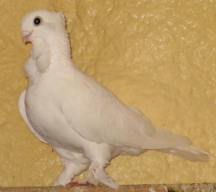 IMG_1681 Published February 4, 2012 at 720 × 640 in Photographs of Seraphim Pigeons A 6-month old Seraph cock; he is almost in show-stance. Here you can see the prominent chest with the wing-butts held well out from the body, a desired trait. Everything about this young cock is nearly perfect. What a beauty!